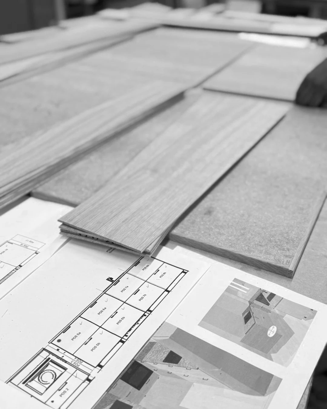 Once you have approved the quote and paid for your order, we will send everything to our carpentry workshop in southern Sweden. Here, the order is prepared by selecting veneer in the type of wood you have chosen. Everything is hand-picked for your doors and adapted to your kitchen design. The fronts then receive their chosen surface treatment.