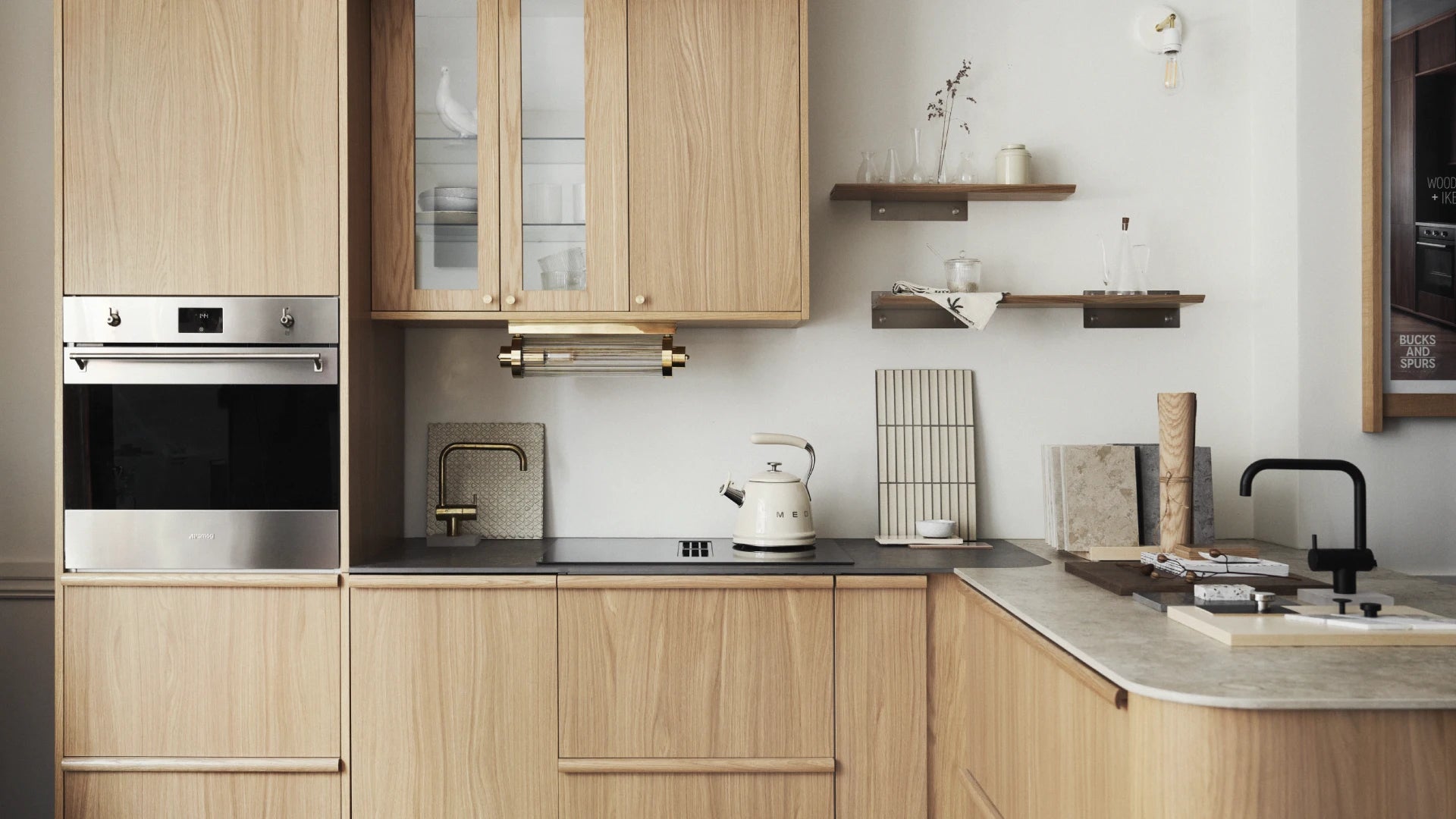 Kitchen doors in natural oak in a smooth finish that creates a warm and harmonious feeling.