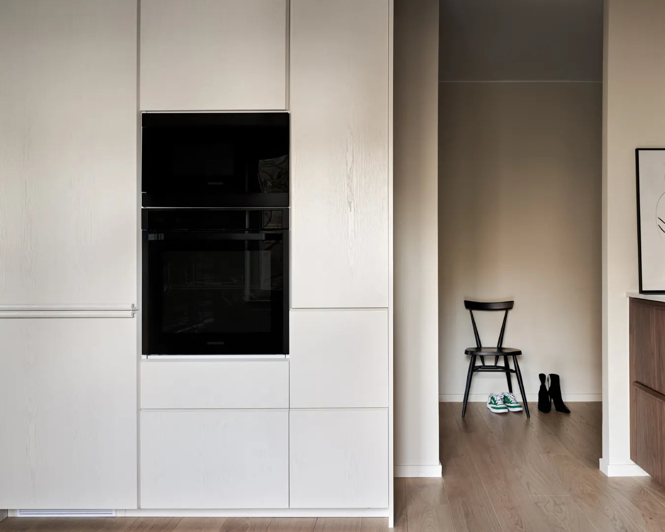 Our Color+ drawer front is made of ash and lets the natural structure of the wood show through the painted surface. An elegant beveled edge highlights the design, while the straight edge option can be combined with a grip strip for a uniform and stylish expression.