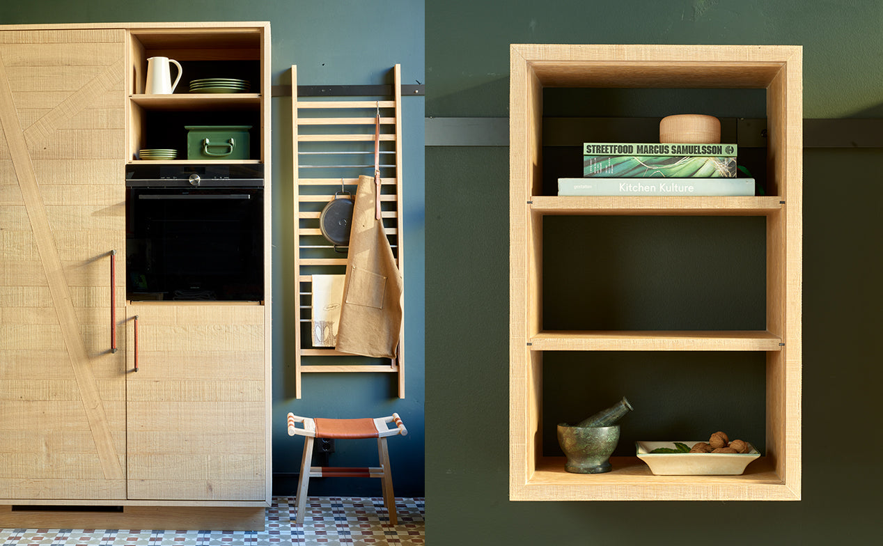 Alla Railway Kitchen-moduler och dörrar/skjutdörrar tillverkas av skickliga hantverkare här i Sverige. Vi använder ek av finaste kvalitet, bandsågar hela plankor eller fanér med omsorg och ytbehandlar varsamt för att behålla en naturlig ljushet i eken som ska hålla många år framöver. Det är ett tidskrävande arbete men ger ett fantastiskt unikt resultat.