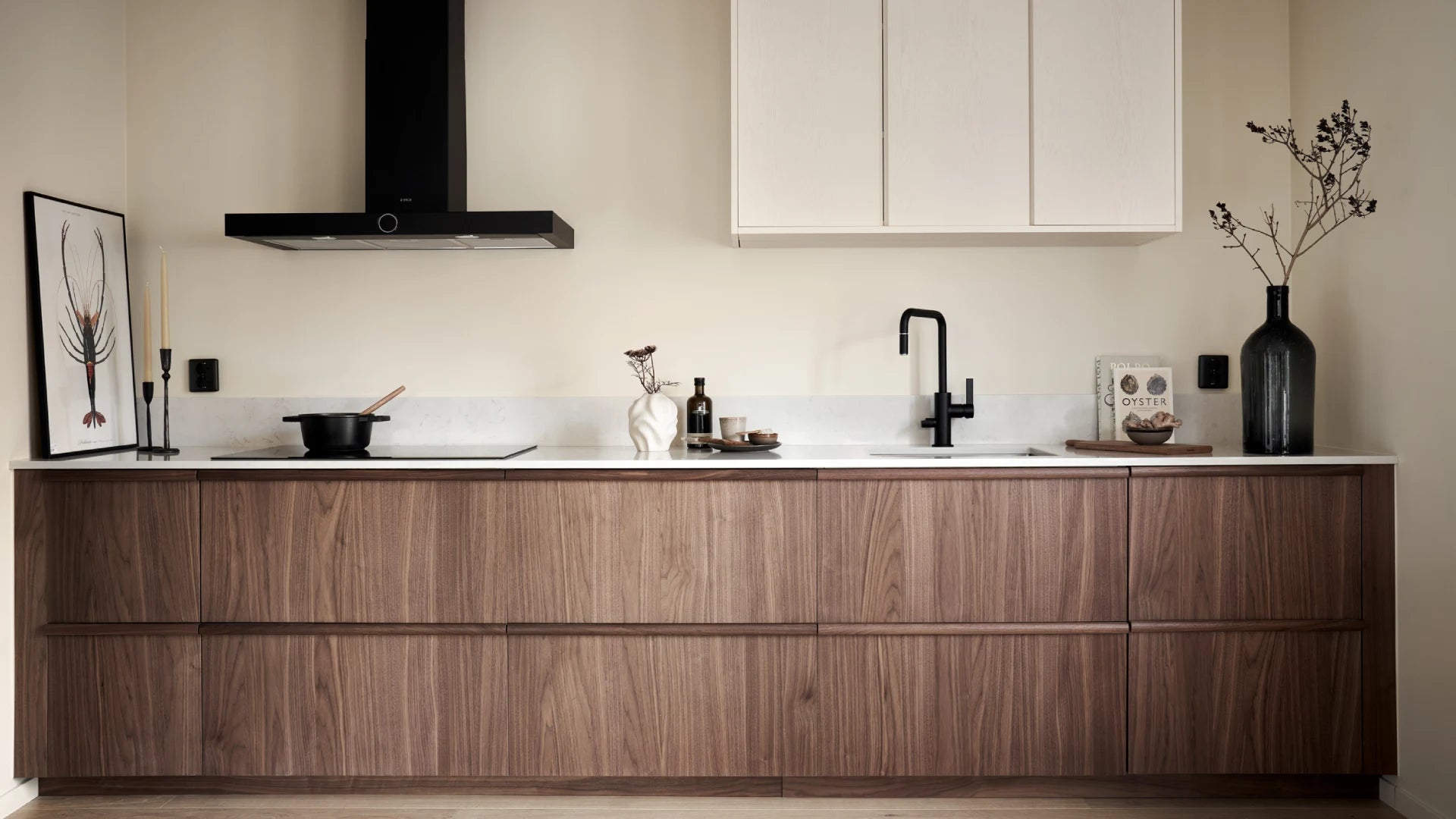 Våra köksluckor i elegant valnöt ger köket rika nyanser och en tidlös trästruktur.
