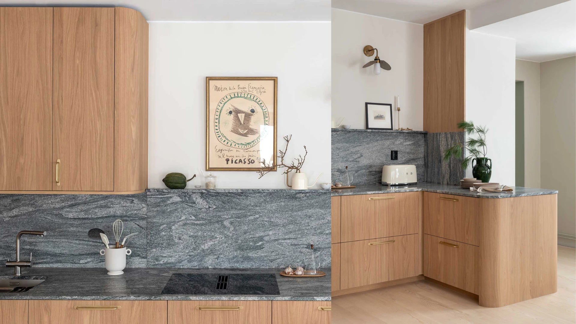 Köksluckor i naturlig ek i ett slätt utförande som skapar en varm och harmonisk känsla.